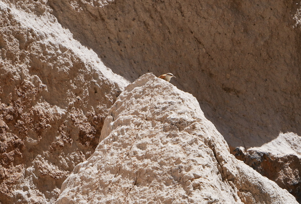 Jagged spires extend from the canyon wall like splayed feathers of a stone eagle. In tall vertical fissures, rock wrens perch and scan the land. Small lizards scurry about on and around gnarled rock formations while snakes slither in the grass below. This area's human inhabitants left long ago, but there's still plenty of life to be found here.