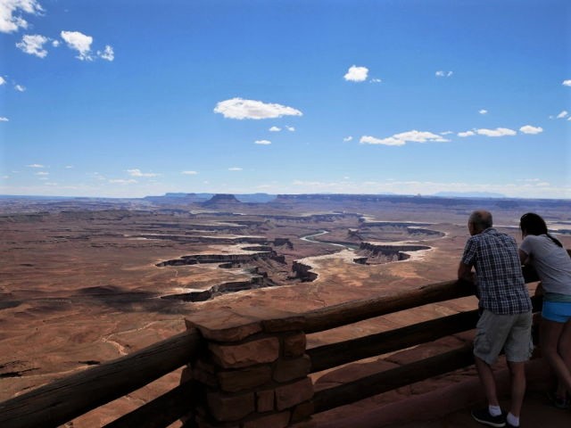 The Green River Overlook was my final stop before departing, my last chance to lose myself in the canyons of Canyonlands. It may be the barest view yet, with the canyon shelf sprawling far and wide around a winding inner canyon where the river runs. A couple of families with teenagers stood nearby. Everyone was resting their elbows on the wooden railings with their necks craned forward to drink in the scene like parched wildlife gathered at a watering hole. I took my fill among the herd and departed in search of the next source.