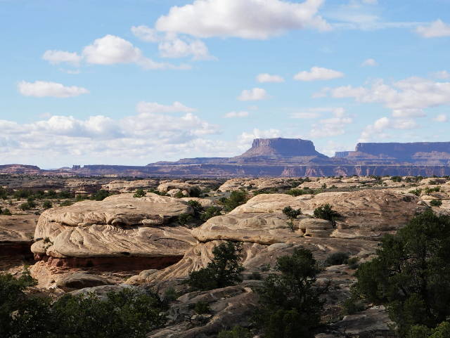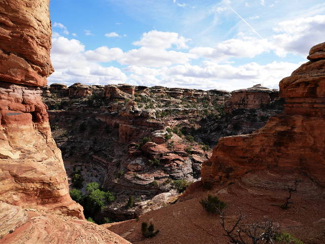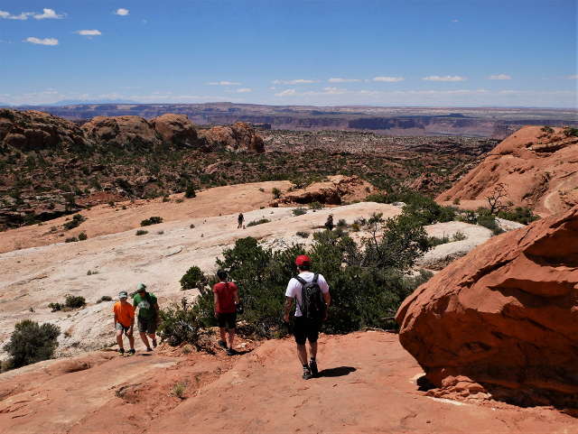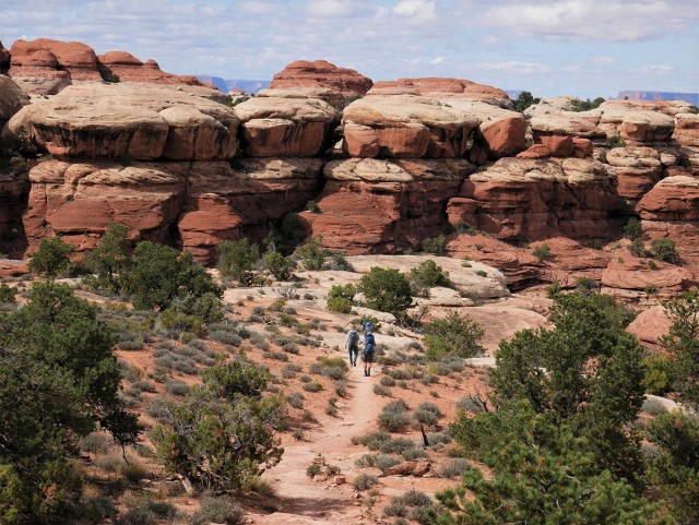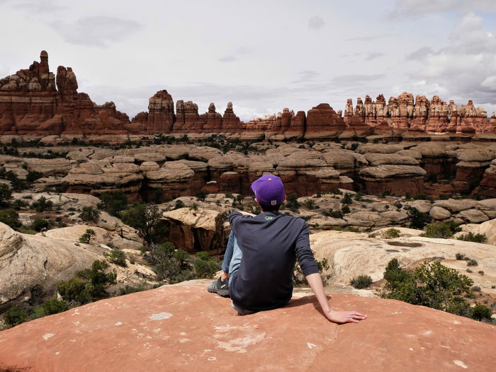 If it weren't for the hundreds of cairns to point the way, Canyonlands would be an incredibly difficult place to hike. Dirt paths frequently lead onto slickrock and over jumbles of giant boulders where you'd have no idea which direction to go if it weren't for the numerous tiny rock piles. It's tempting to break off the trail and scramble up an interesting rock formation, and there's nothing other than your physical limitations to prevent you from doing so. Though everyone follows the same routes (the Needles offers more than 60 miles of trails), it feels like there's a great deal of freedom while wandering this wilderness.