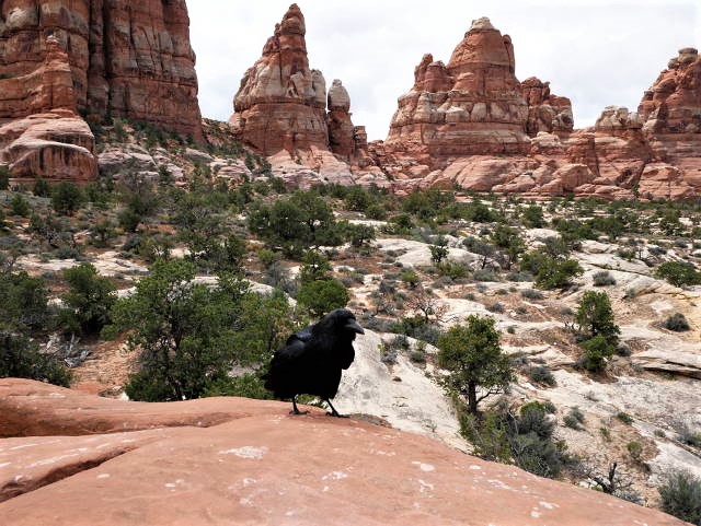 As I entered this arena the sun finally broke through and splashed across the red spires that now contrasted against a light blue sky which held feathery white clouds. I took my seat next to a hungry raven on a warming rock and scanned an astounding setting I knew I'd return to many times in the future when I close my eyes seeking an escape.
