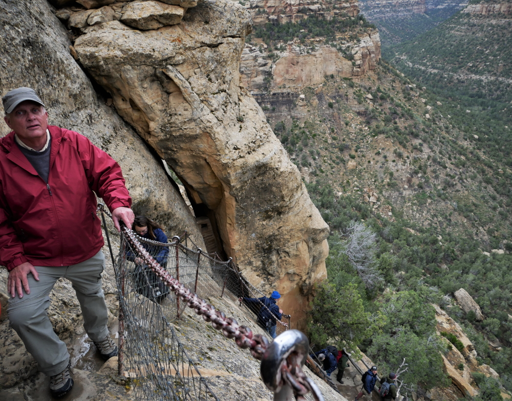 My introduction to Mesa Verde's cliff dwellings wasn't a glimpse from a distance but a close encounter. It's a 25-mile drive from the visitor center up to the Balcony House parking area atop Chapin Mesa. After gathering at the staging area with the my fellow tour-takers and listening to the park ranger give a brief overview of what we were about to experience, we marched toward the edge of the cliff.